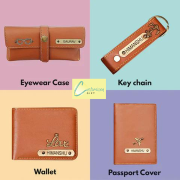 A thoughtfully designed utilitarian gift hamper for men to make their special days memorable. This complete personalized combo is made from top-grade leather and thus delivers longevity. Get it personalized with the recipient's name and suitable monograms to curate a meaningful gift.