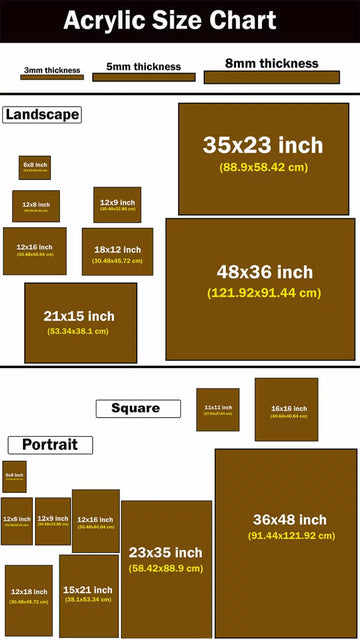 Choose Your Photo: Select your favorite photo or artwork to transform into an acrylic masterpiece.Customize Your Size And Thickness : Pick the size and thickness of frame that fits your space best