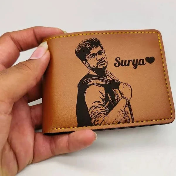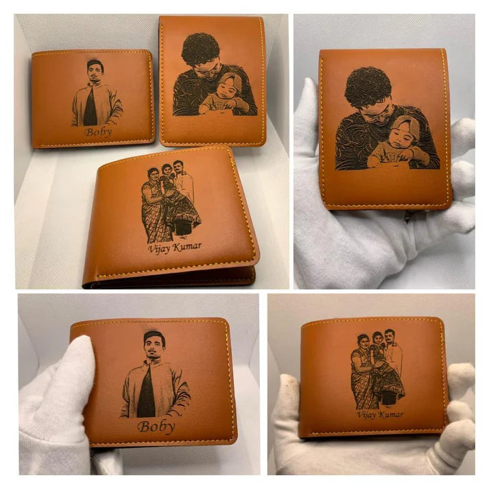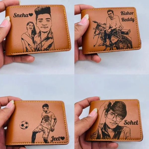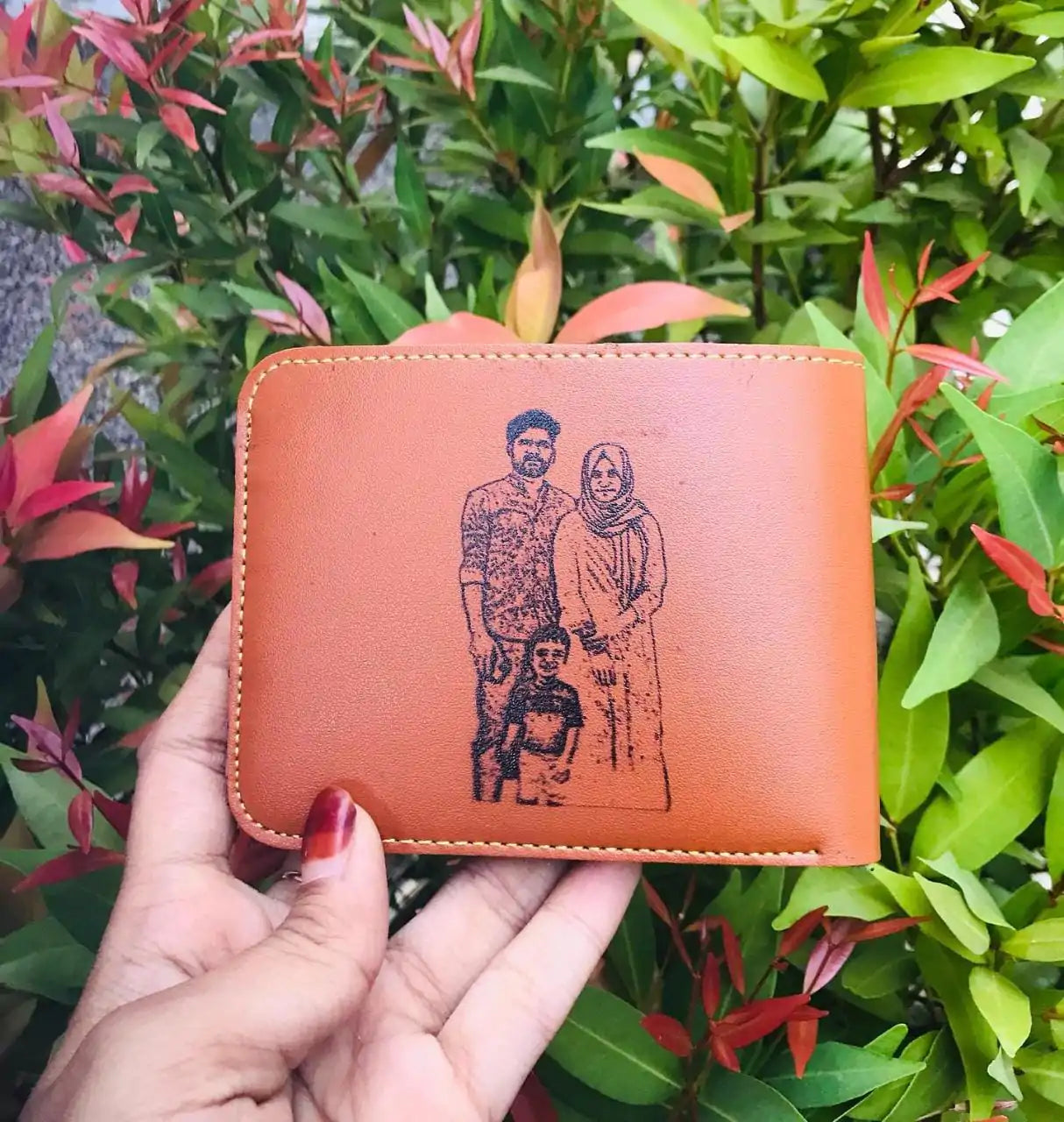 A super-stylish personalized sketch wallet for men in premium leather. It accommodates all your cash, bills, and cards safely in its multi-compartmental design. Sleek and comfortable, this men's wallet is a perfect gift for all occasions.