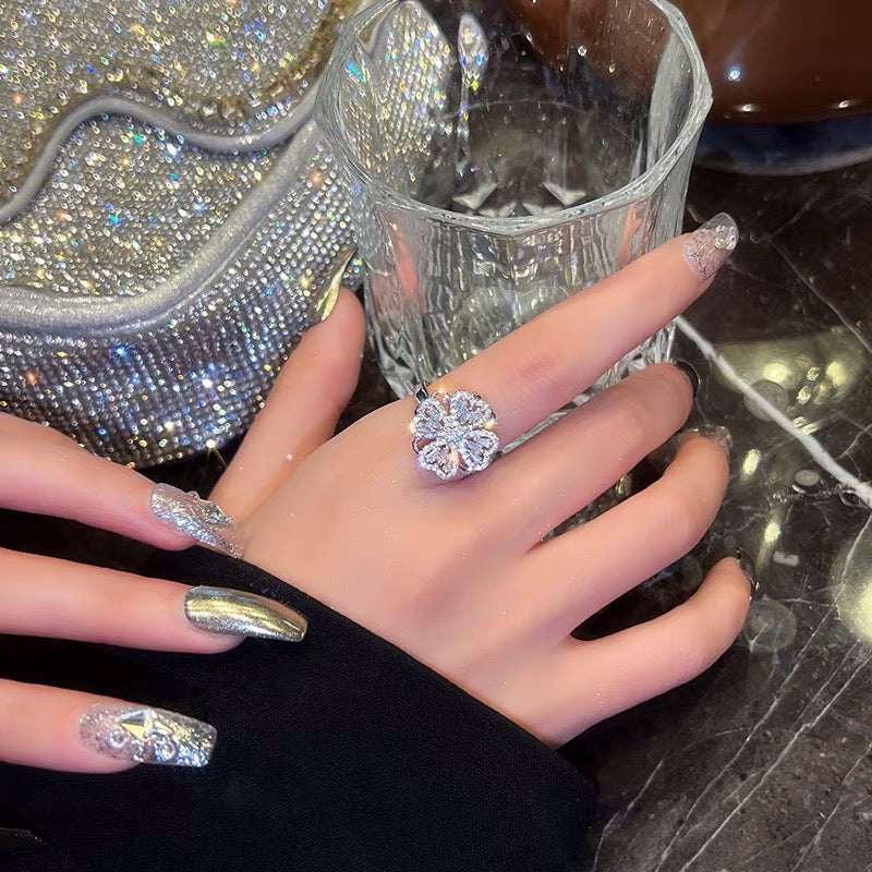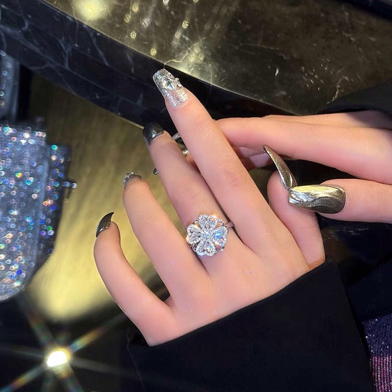 - This delicate Rotating FlowerZircon Clover Ring has just enough sparkle to make it perfect for adding a little fun to your look.