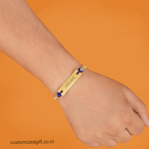 Celebrate the special bond between siblings with our exquisite Personalized Eye-Catcher Rakhi. This Rakhi not only carries the traditional essence but also offers a modern touch with its unique evil eye charm and name personalization.