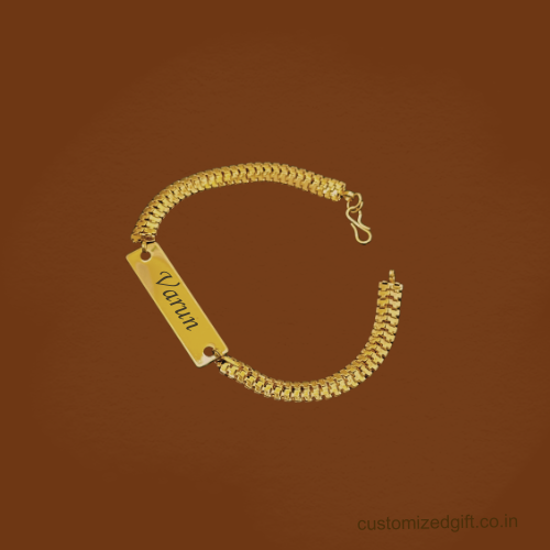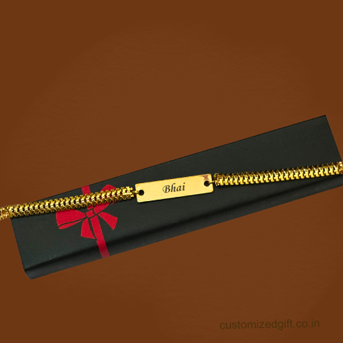 Introducing our exquisite personalized metal bracelet rakhi with name, the perfect fusion of tradition and individuality. Crafted with meticulous attention to detail, this stunning bracelet features a sleek metal band adorned with delicate engravings, making it a timeless piece for any occasion. The highlight of this rakhi is the option to personalize it with your brother's name, adding a heartfelt touch to the festivities.