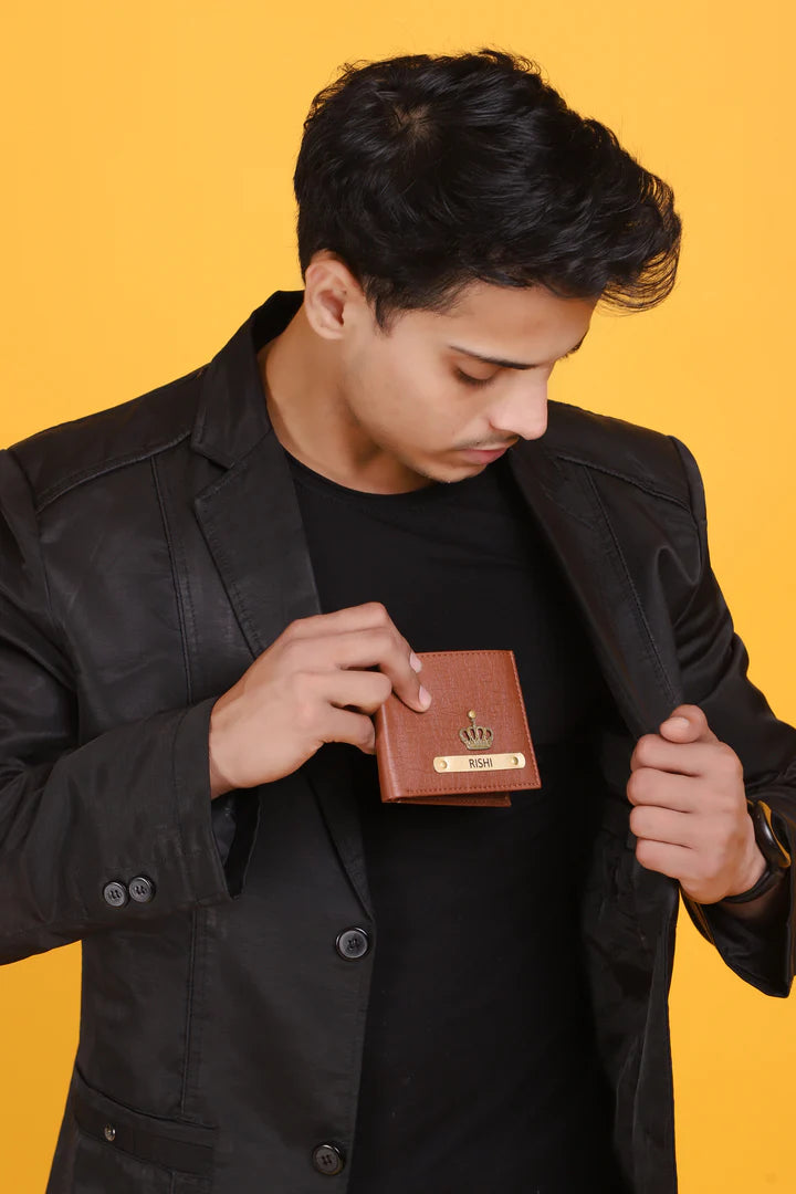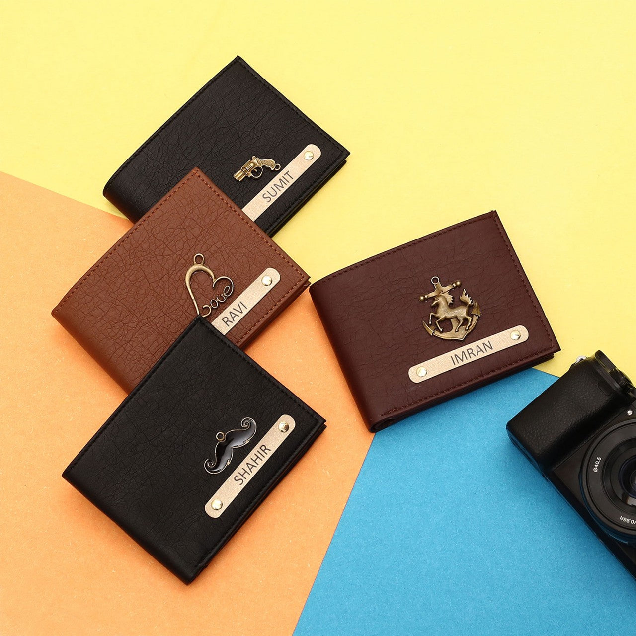 Personalized Textured Premium Quality Men's Wallet With Name & Charm